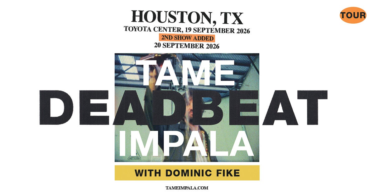 Toyota Center is excited to welcome GRAMMY Award-winning artist Tame Impala to the stage on September 19 and September 20 for The Deadbeat Tour with special guest Dominic Fike! A singular artist renowned for carving out a distinct sound all of his own, Kevin Parker crafts transcendent genre-bending sonic landscapes, playing every instrument and acting as writer, producer, mixer and engineer on his projects. He has been nominated for five GRAMMY awards with two wins. Tame Impala has had numerous US Alternative Radio Top 10 songs, including three #1’s for “Dracula,” “Lost In Yesterday,” and “Is It True.” Tame Impala’s “The Less I Know The Better” is part of the Billionaires Club with more than 2 billion streams and numerous gold and platinum certifications globally. Don't miss your chance to catch Tame Impala this fall with Dominic Fike!